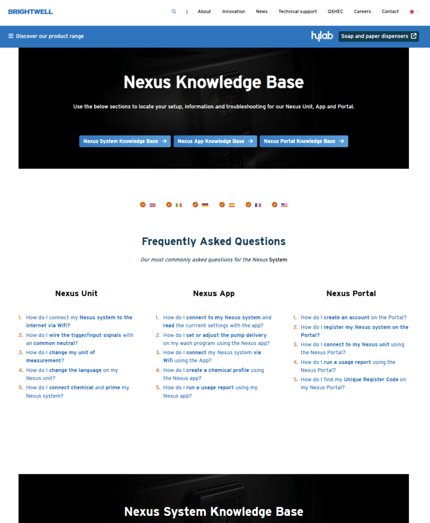 – Product an online Knowledge Base for our laundry product and its supporting software